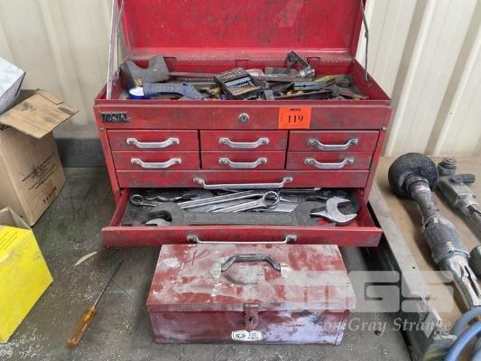 TOOL BOX & CONTENTS ASSORTED HAND TOOLS
