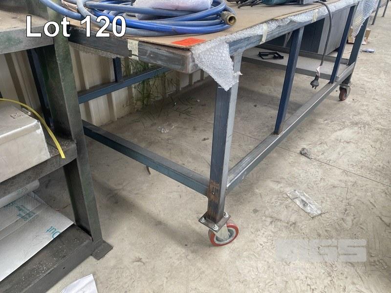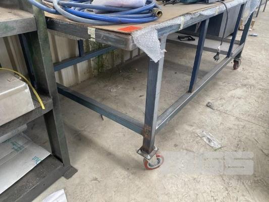 MOBILE, STEEL WORKSHOP BENCH, 2400 x 1200 x 850mm APPROX