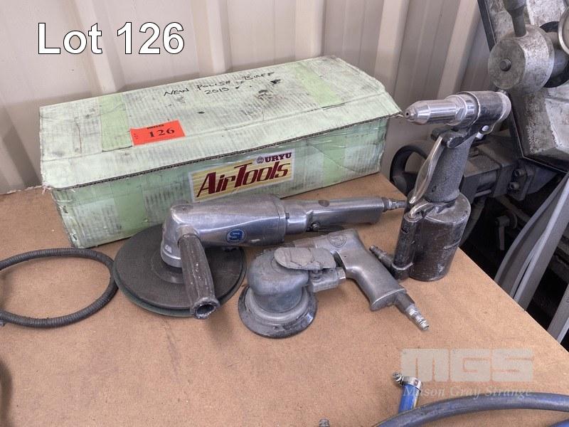 PNEUMATIC TOOLS INCLUDING 2 x POLISHERS, POP RIVET GUN, DRILL & GRINDER