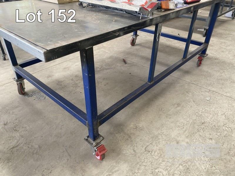 MOBILE WORK BENCH, PLATE STEEL TOP, 4 WHEEL, 2400 x 1200 x 850mm