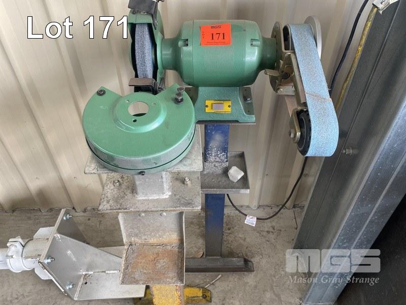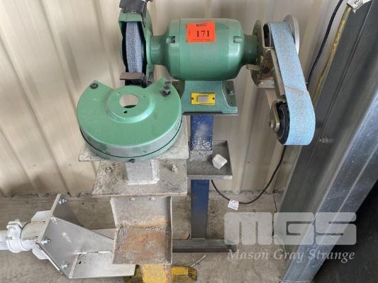 GRINDER/LINISHER MOUNTED ON FABRICATED STEEL STAND WITH ADDITIONAL STAND