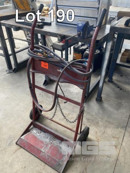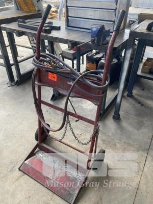 OXY ACETYLENE WELDERS TROLLEY, HOSES, GAUGES & HAND PIECE