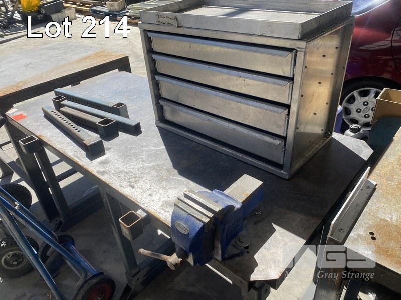 WORK BENCH, 1600 x 750mm, VICE & ALLOY TOOL BOX