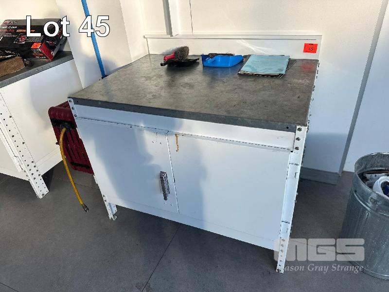 SHARMAN TECH BENCH, STEEL, WHITE BASE, GALV TOP, 1100 x 800mm
