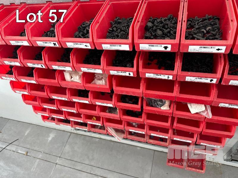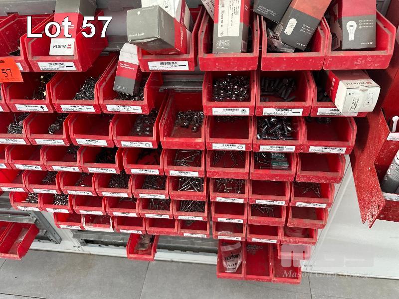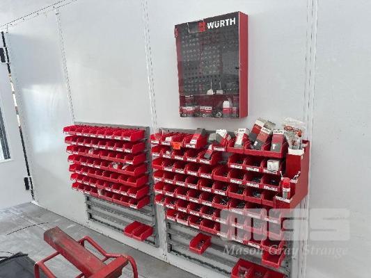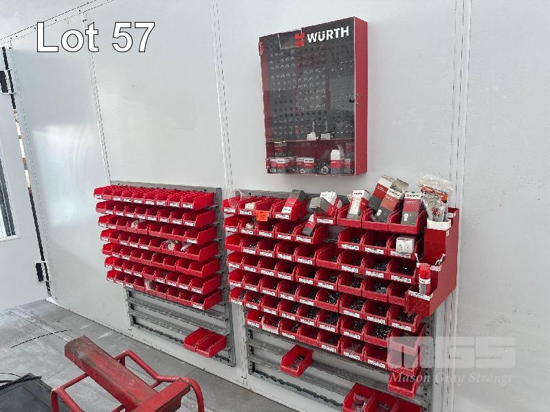 2 x WURTH WALL MOUNT MINI TUB COMPONENT RACK & CONTENTS ASSORTED HARDWARE PLASTIC CLIPS, RIVETS, SCREWS, ETC. WITH WURTH WALL MOUNT GLOBE CABINET & CONTENTS
