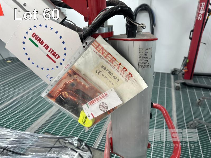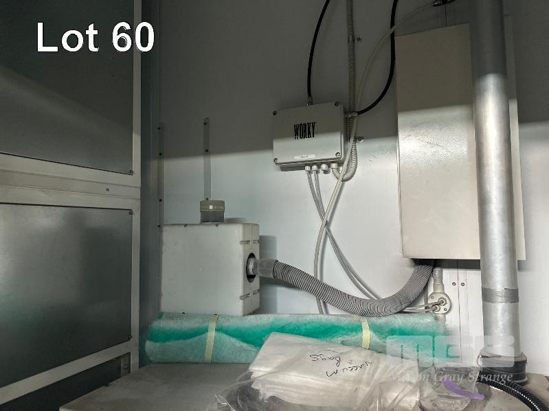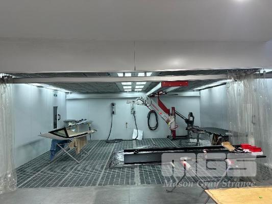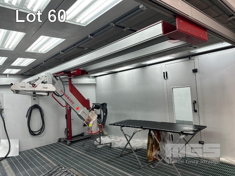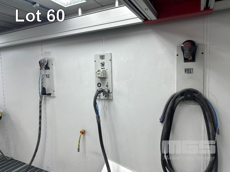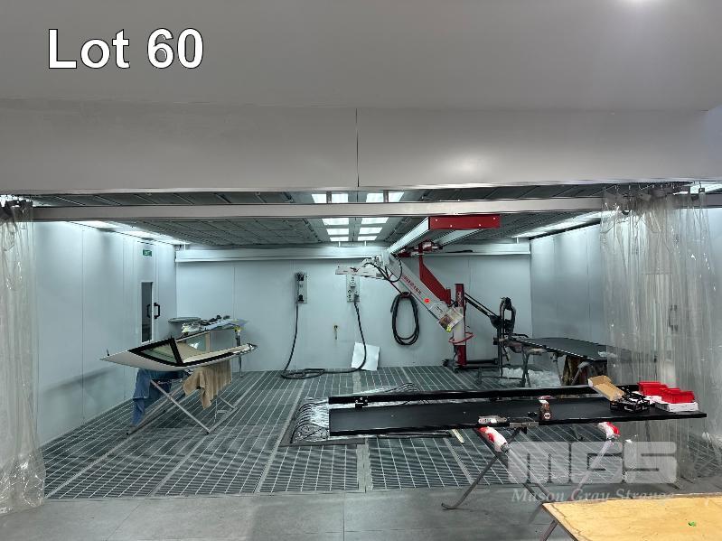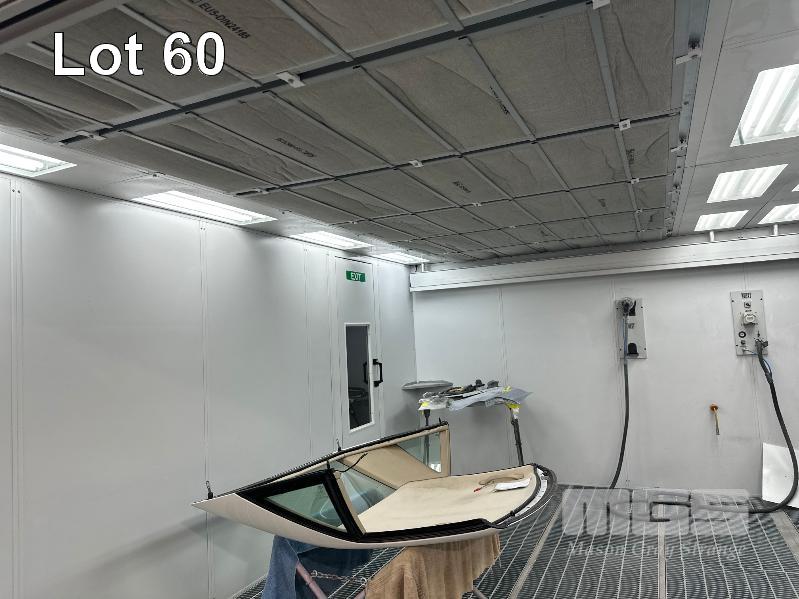 PAINT PREPARATION AREA SUSPENDED ROOF FULL DOWN DRAFT SYSTEM WITH DUAL WORKING SANDING STATIONS WITH DUST EXTRACTION SLIDING DRYING INFRARED DUAL CELL DRYER TRAVEL X & Y AREA 6.9 METRES WIDE x 5.8 METRES DEEP CLEAR CURTAIN TO FRONT 16 LIGHT BANKS GALV GRID FLOOR NO SIDE WALLS