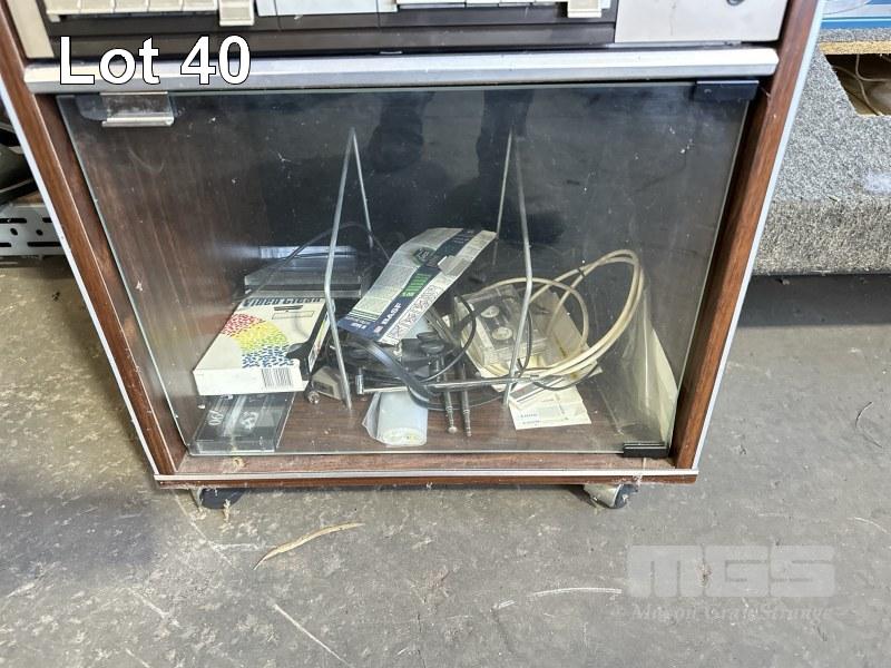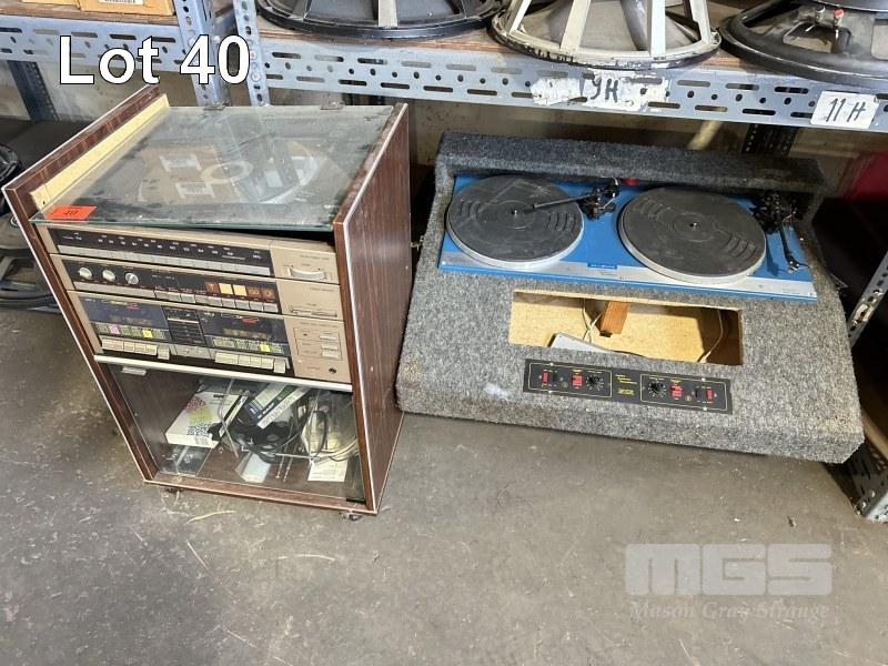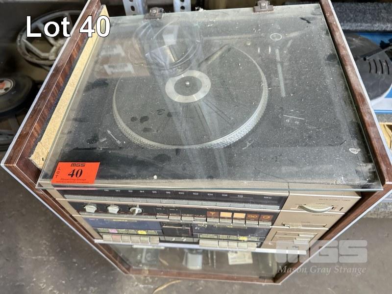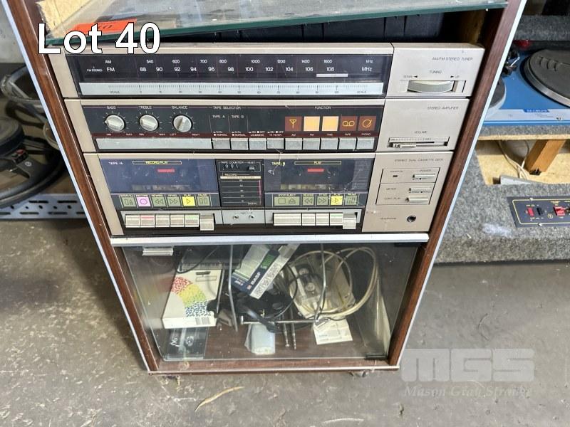 STEREO CASSETTE DECK, TUNER, AMPLIFIER & TURNTABLE IN CABINET