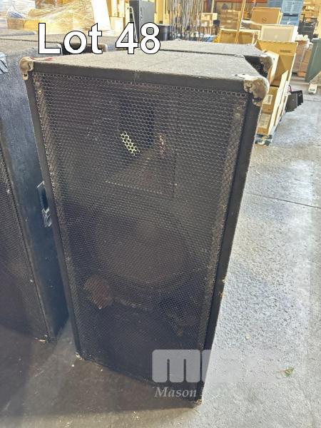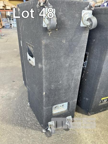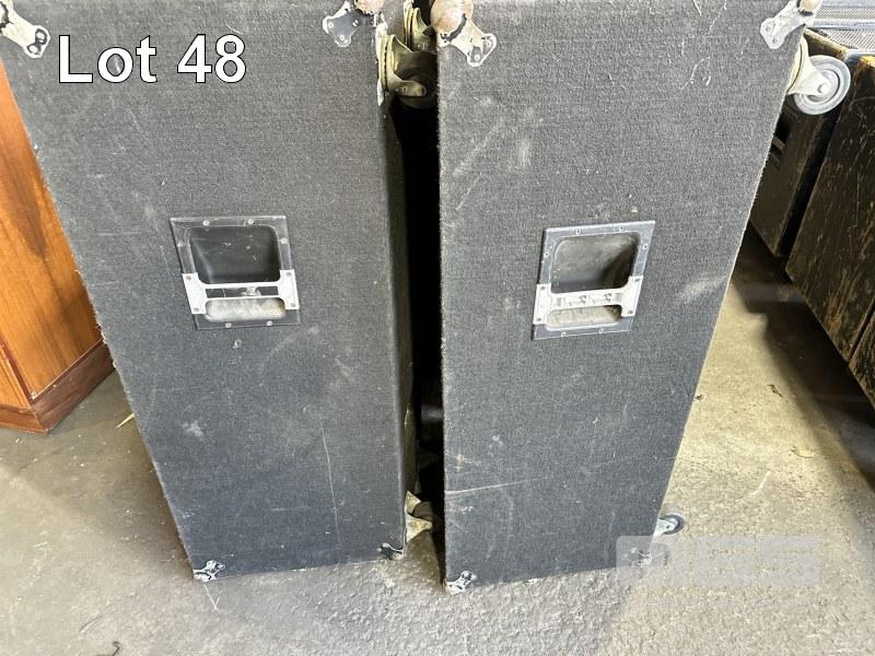 2 x DUAL ELECTRO VOICE 15" SUB BASS SPEAKERS WITH HP64 EV HORN ON CASTORS