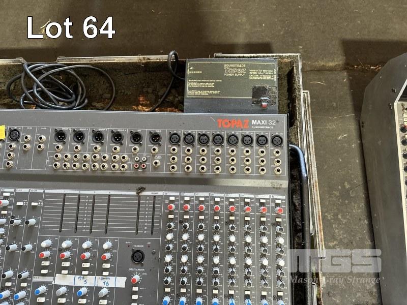 TOPAZ MAXI 32 BY SOUNDTRACS MIXING DESK IN ROAD CASE, 126 x 90 x 24cm