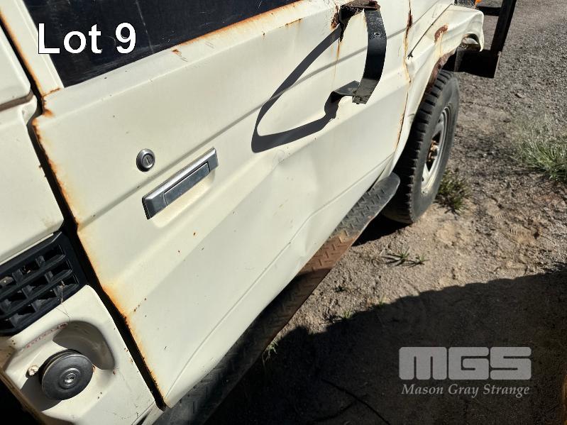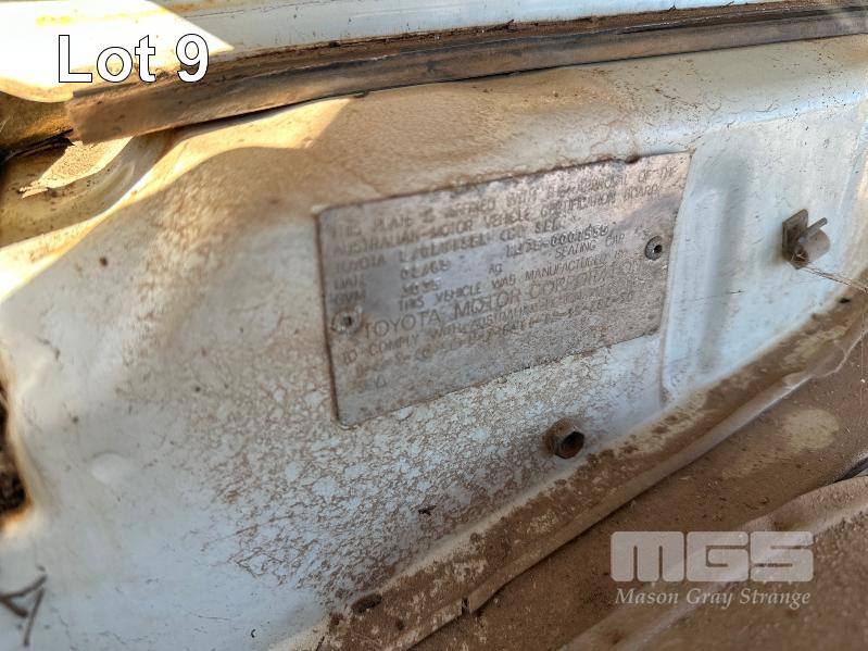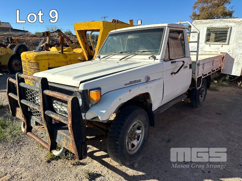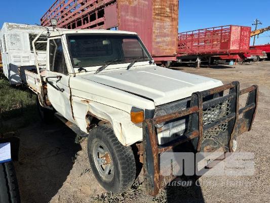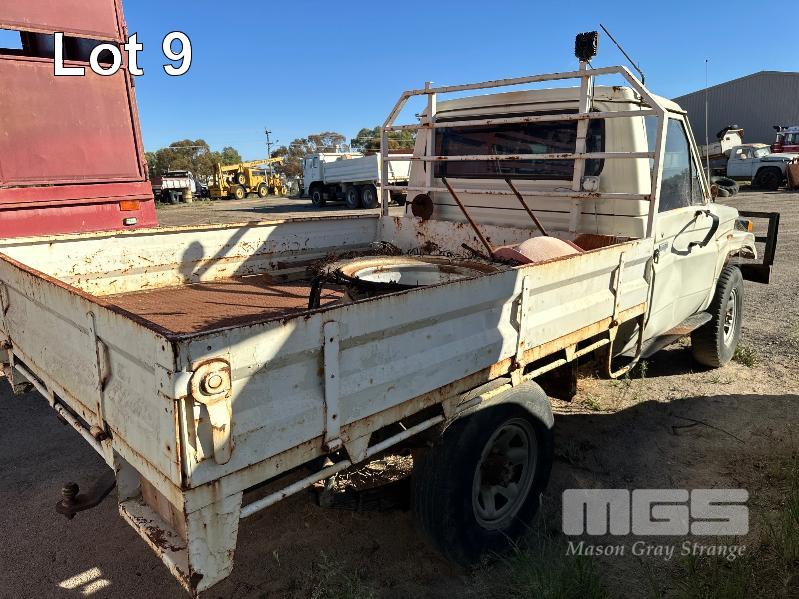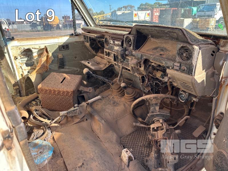 1989 TOYOTA LANDCRUISER HJ75 SINGLE CAB TRAY TOP REG: NO PLATES ODO: 539,691kms SHOWING 6 CYLINDER DIESEL, MANUAL TRANSMISSION, VIN: HJ75-0001555 MISSING A/C, ALTERNATOR, INTERIOR, STEERING COLUMN REMOVED