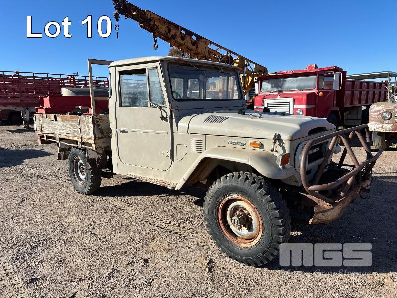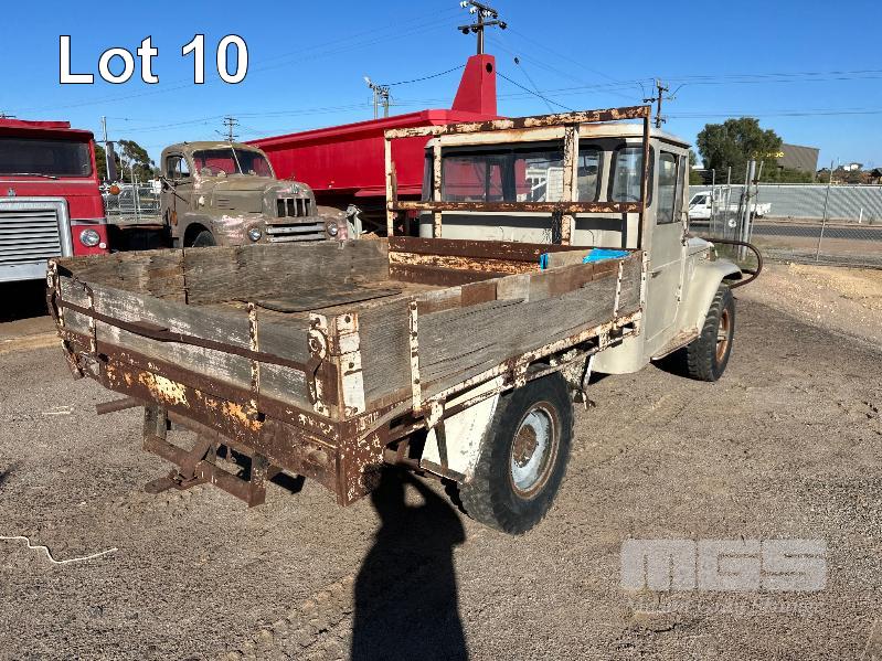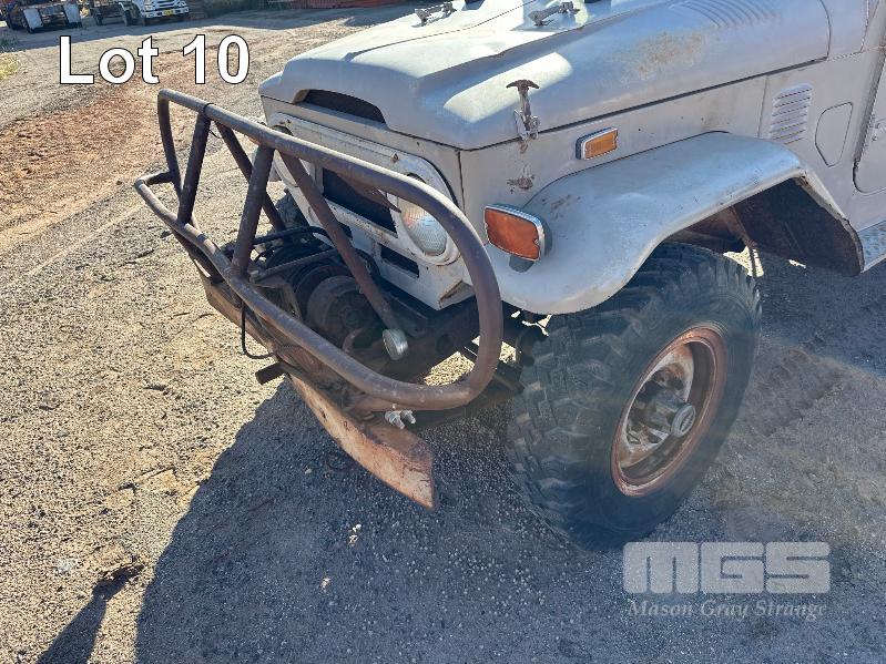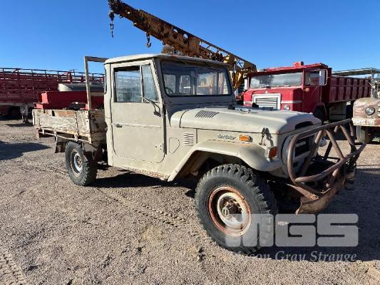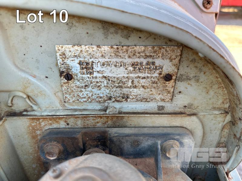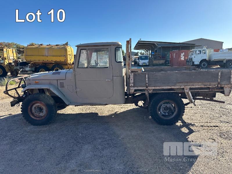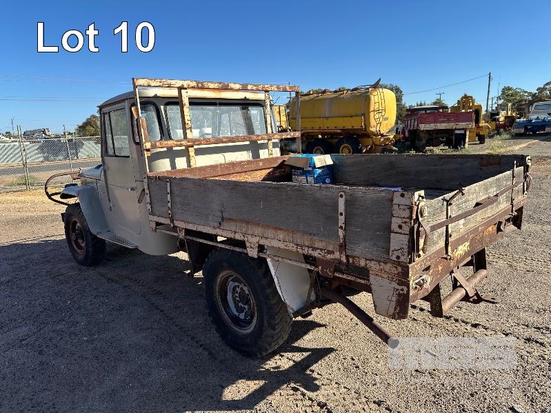 1974 TOYOTA LANDCRUISER FJ 45 SINGLE CAB TRAY TOP REG: NO PLATES 6 CYLINDER, PETROL, MANUAL TRANSMISSION, ID: FJ45-75139 NEW BATTERY,COIL, LEADS, CAP, PLUGS, MASTER CYLINDER, STARTER MOTOR, HOSES, THERMOSTAT, WATER PUMP, FAN, BULLBAR & WINCH (WITH 1 KEY/S)