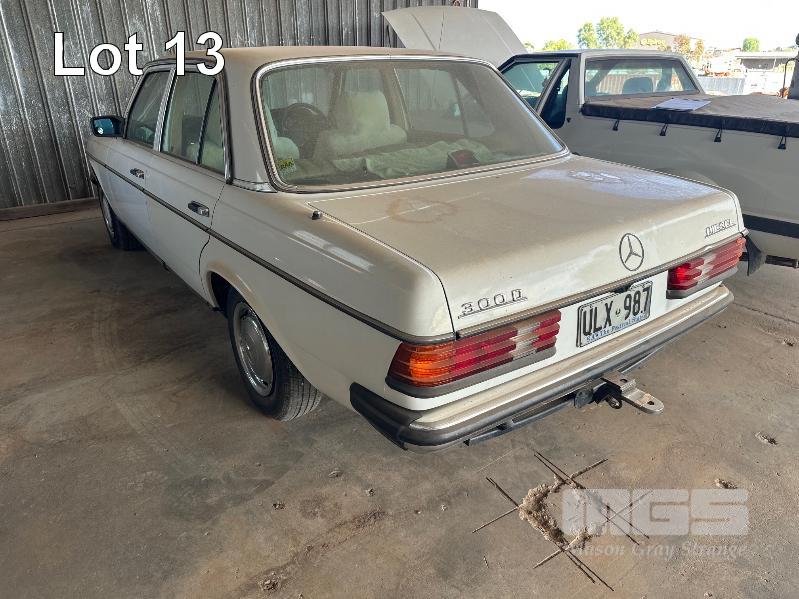CIRCA 1982 MERCEDES BENZ SEDAN MOD: 300D TYPE: 123 REG: ULX 987 CHASSIS: 12313022178023 ODO: 188,801kms DIESEL, AUTOMATIC TRANSMISSION FULL SERVICE HISTORY 1 x KEY & BOOKS