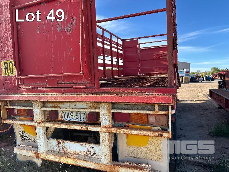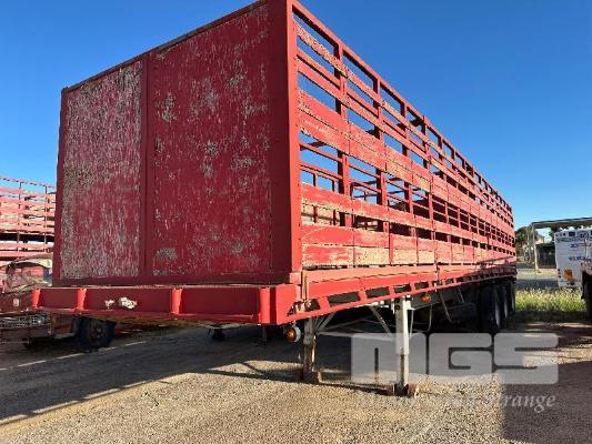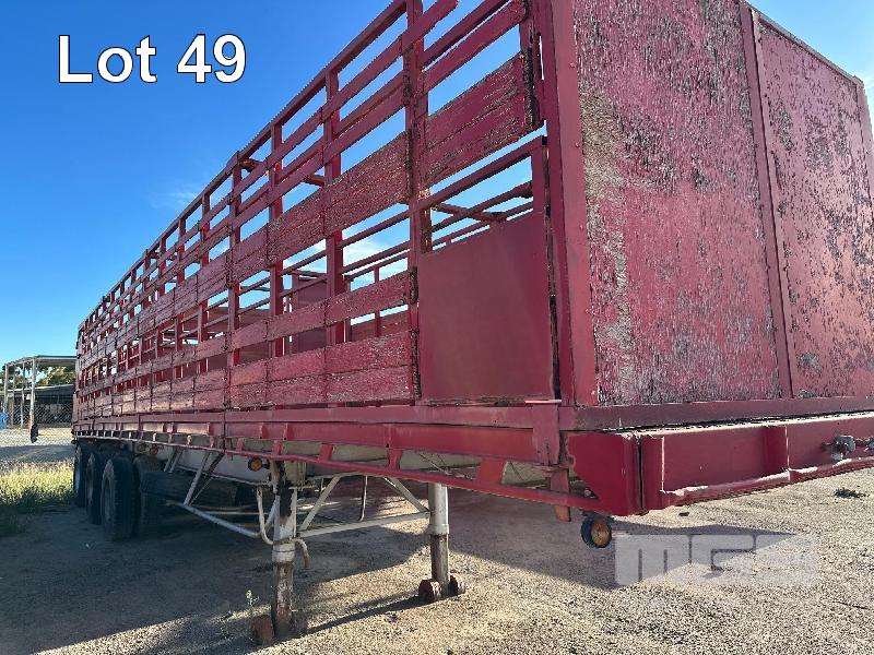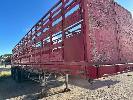 FLAT TOP TRAILER WITH CATTLE CRATE, TRI AXLE