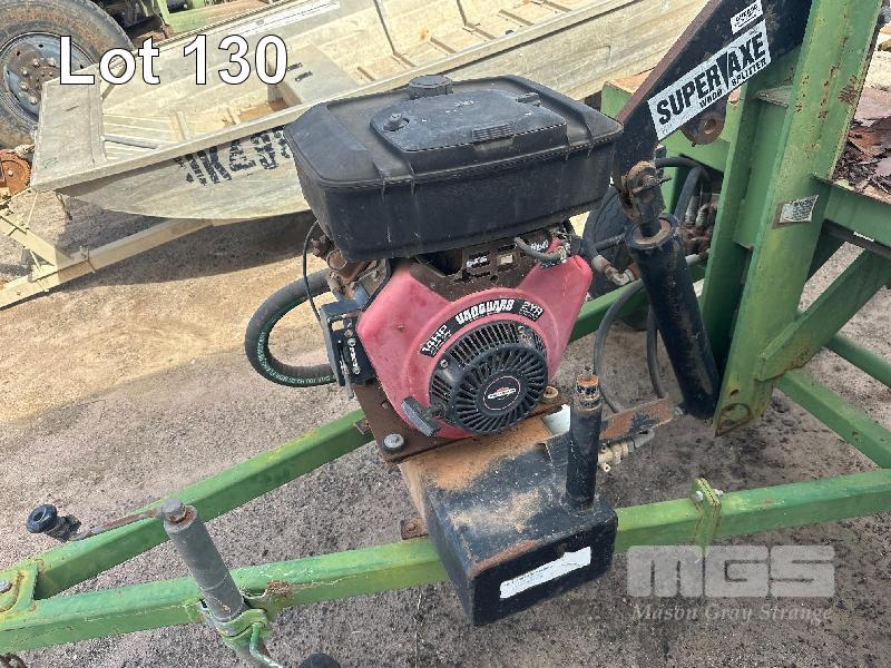 TRAILER MOUNT LOG SPLITTER, SUPER AXE WHITLANDS ENGINEERING, ID: 6T9T26V9712ASW047 2001 HYDRAULIC POWERED BY 14HP VANGUARD ENGINE
