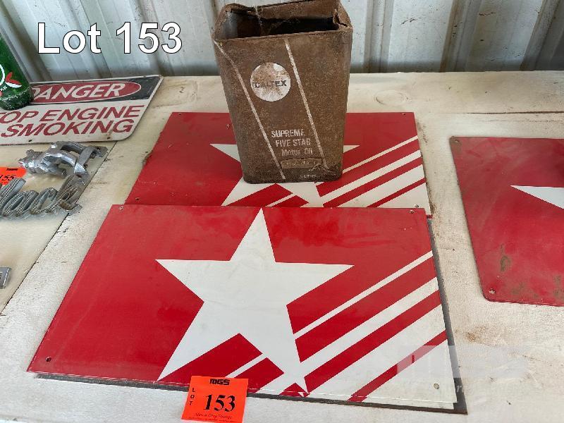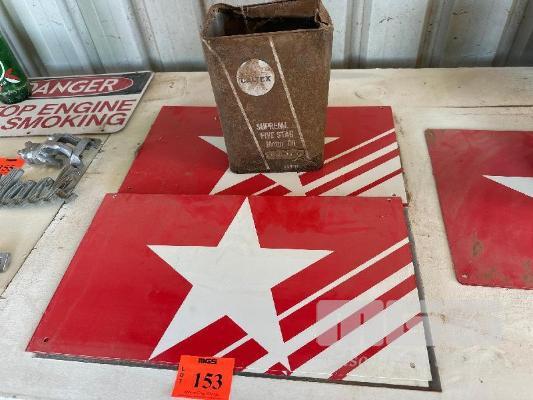 2 x PAIR CALTEX STAR SIGNS & TIN SUPREME FIVE STAR