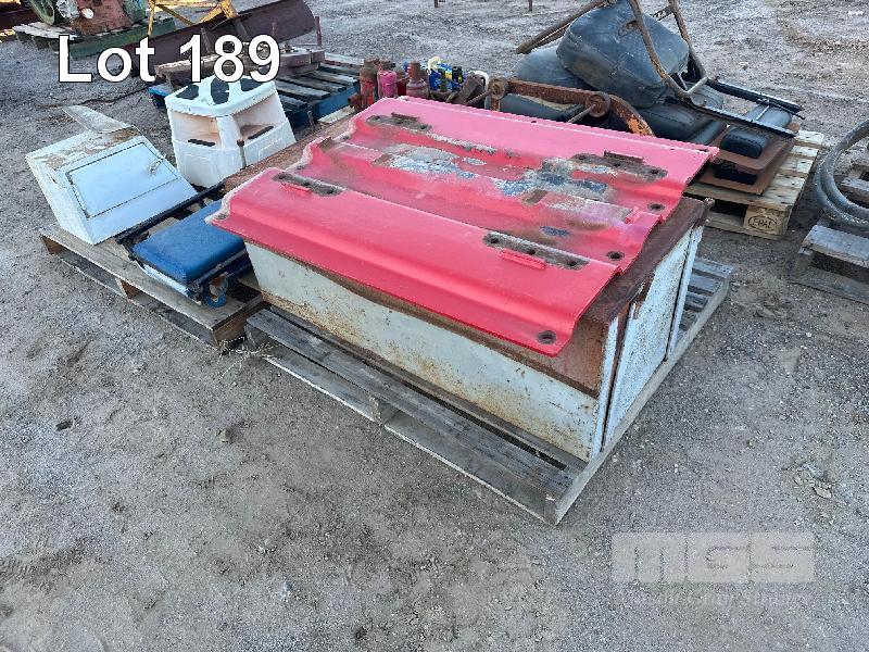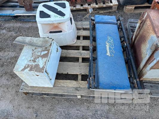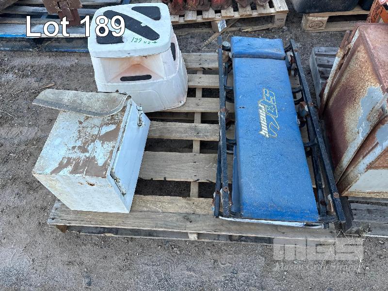 CREEPER, OIL DRUM STAND, TOOL BOX, ETC 2 x PALLETS