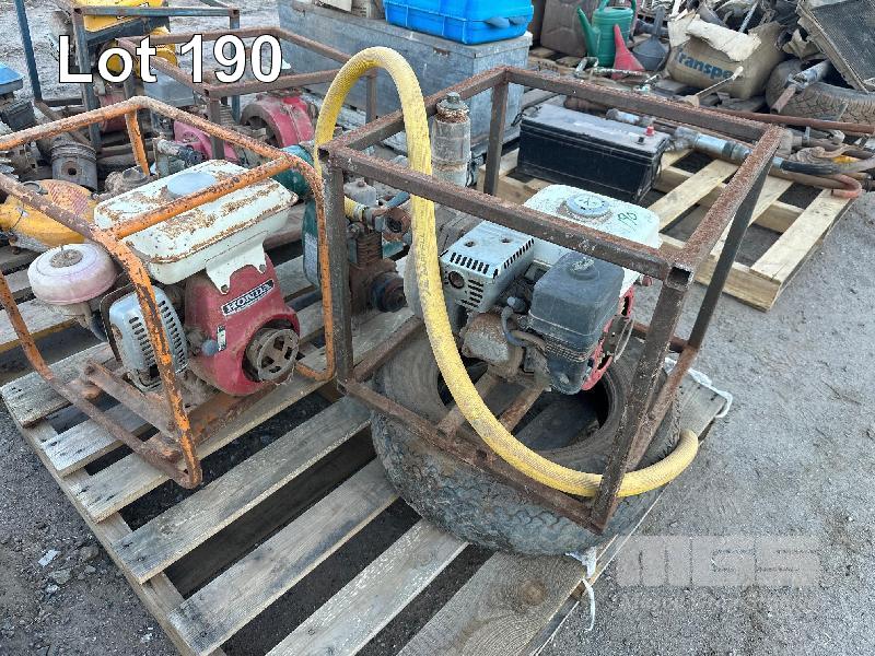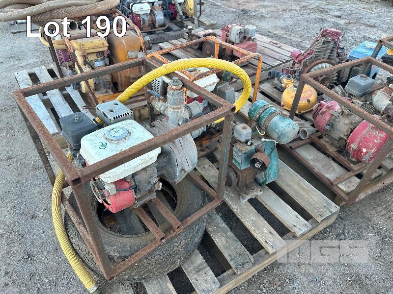 2 x TRANSFER PUMPS, DAVEY & CROMCO, 1-2" PETROL & 2 x PUMPS, ONGA & DAVEY & VILLERS MOTOR