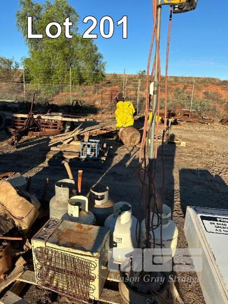 FRIDGE, BOTTLES, RUST PARTS, FUEL TANK, ETC