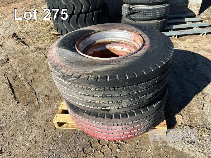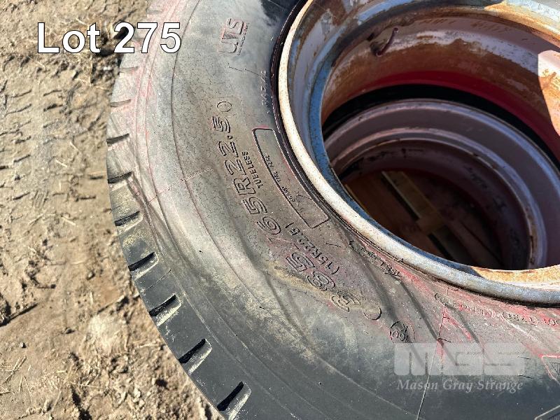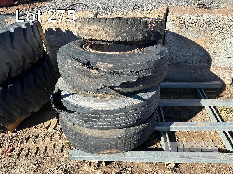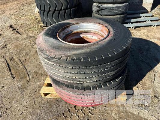 PAIR SUPER SINGLES 285/65 R22.5 & 4 x TRUCK RIMS & ASSORTED OLD TYRES