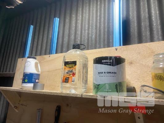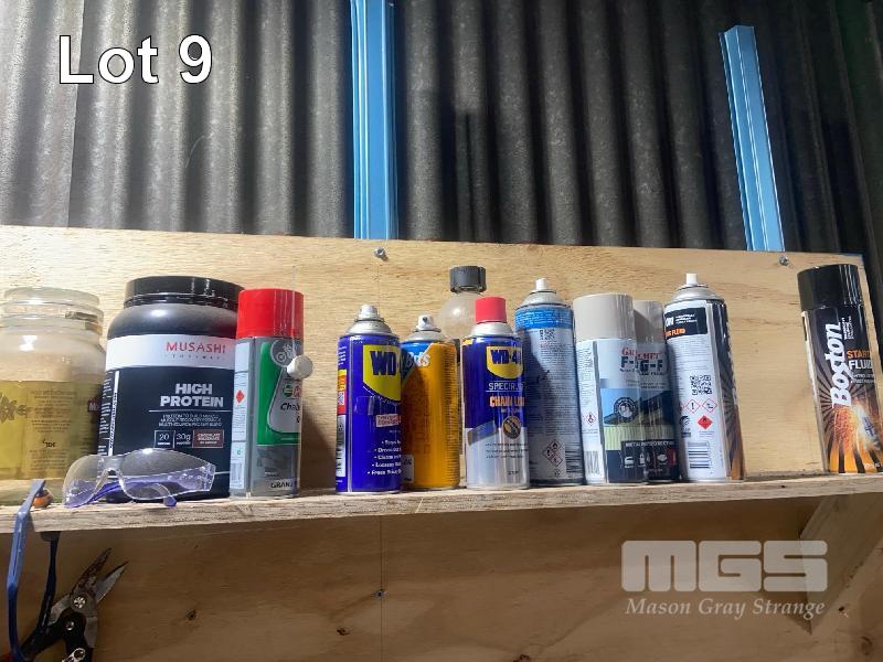 ASSORTED LUBRICANTS, PAINTS, WAX & GREASE, ETC