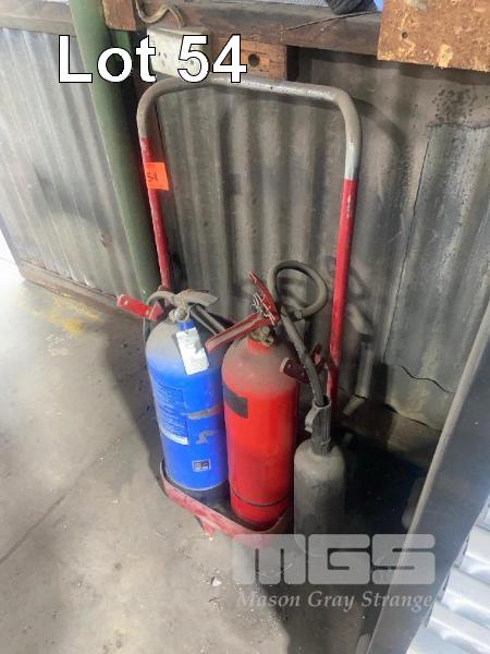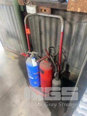 FIRE EXTINGUISHER TROLLEY & BOTTLES