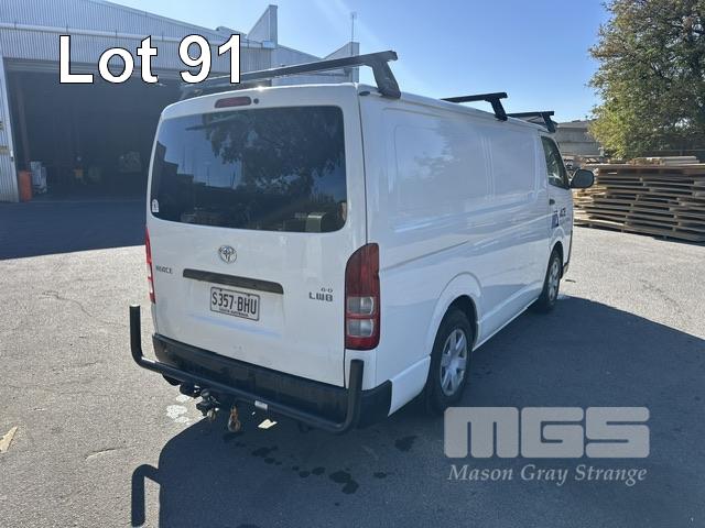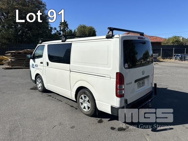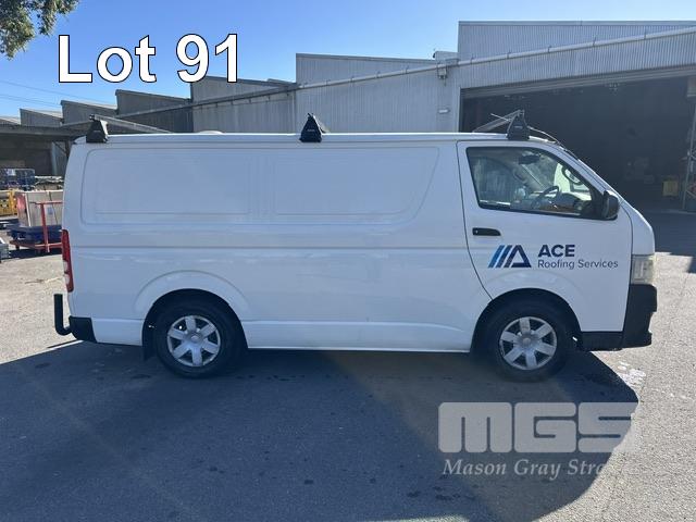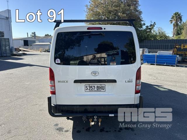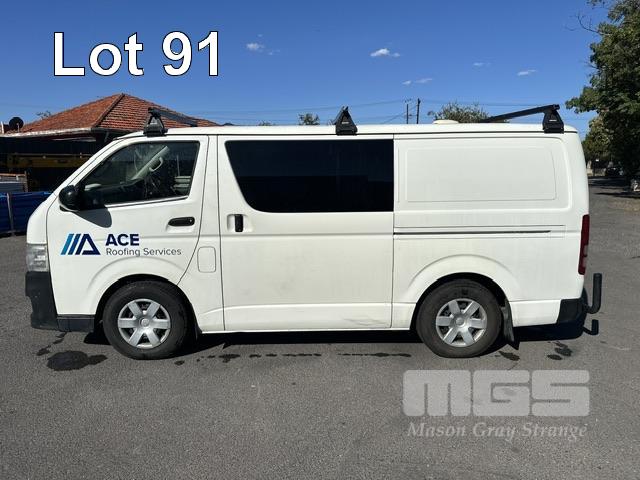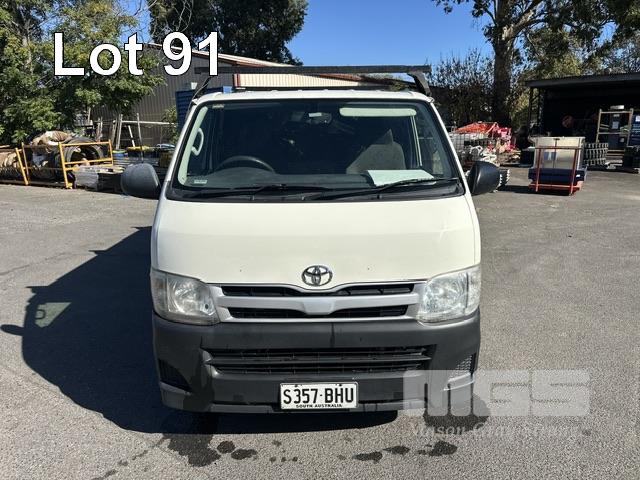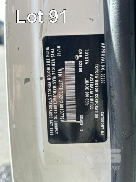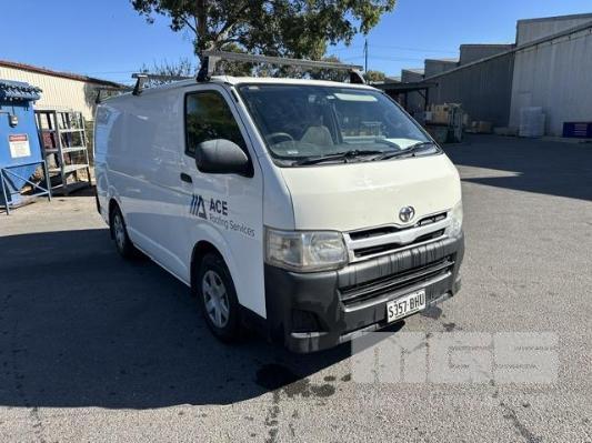 2013 TOYOTA HIACE 200 SER VAN, 6.0 LWB REG: S357 BHU VIN: JTFHT02PX0010779 ODO: 261,580kms SHOWING AUTOMATIC TRANSMISSION, DIESEL, WHITE DUCO, ROOF RACKS, TOW BAR, VAN RACKS, BACK REAR NUDGE BAR 3 SEAT, FOLD DOWN CENTRE