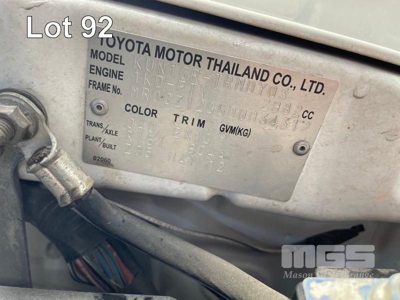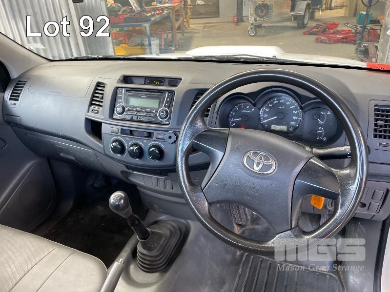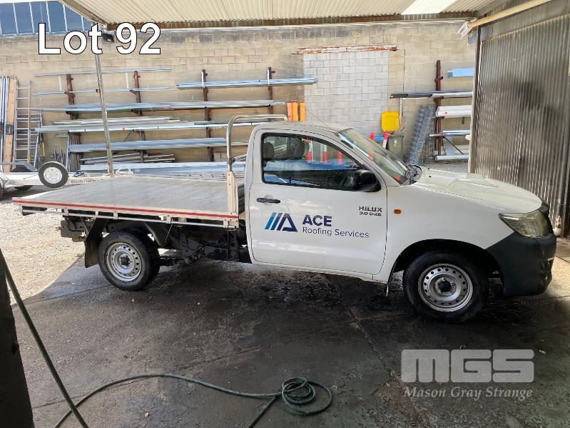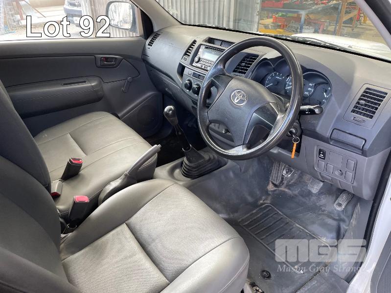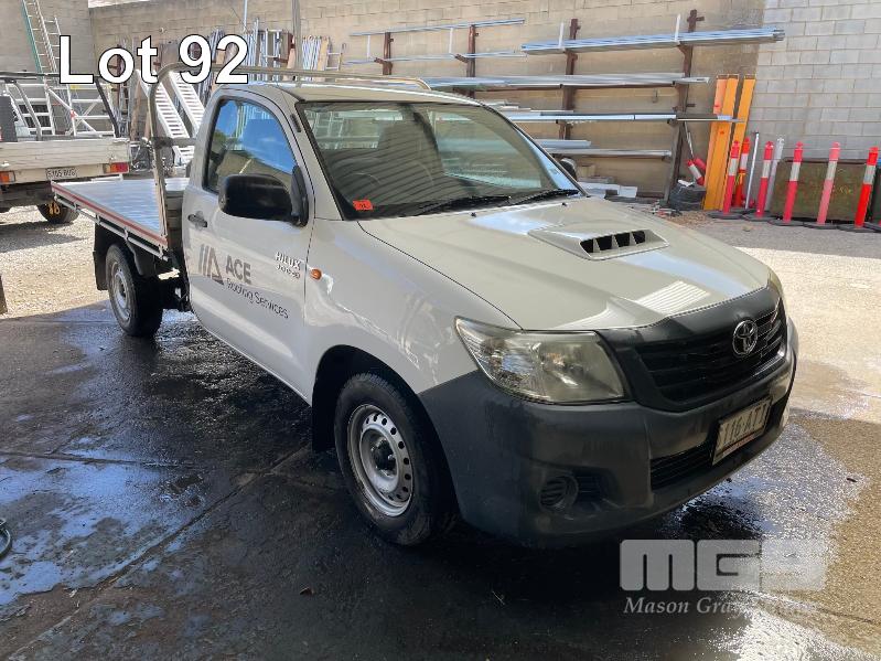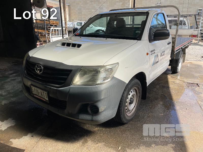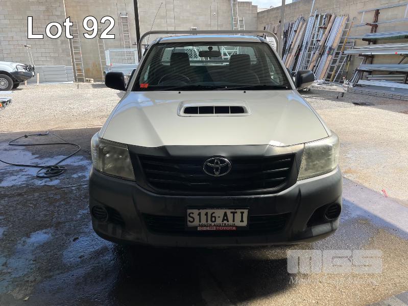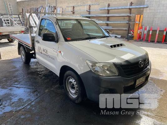 2012 TOYOTA HILUX 150 SER SINGLE CAB TRAY TOP 4x2 REG: S116 ATI VIN: MR0CZ12G500034312 ODO: 148,198kms SHOWING 3 LITRE TURBO DIESEL, 5 SPEED MANUAL TRANSMISSION, 4x2 3 SEAT, BUCKET DRIVERS ALLOY FLAT BED TRAY TOP TOW PACK NOTE: NEAT TIDY CAR