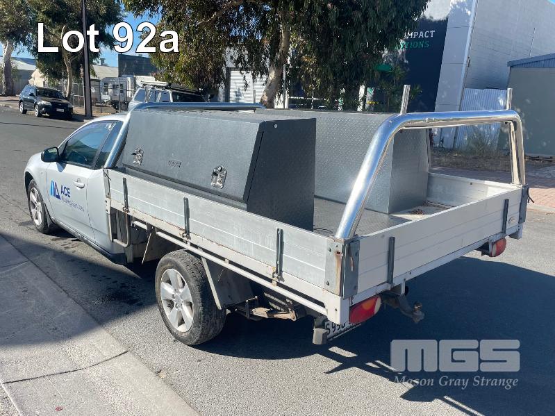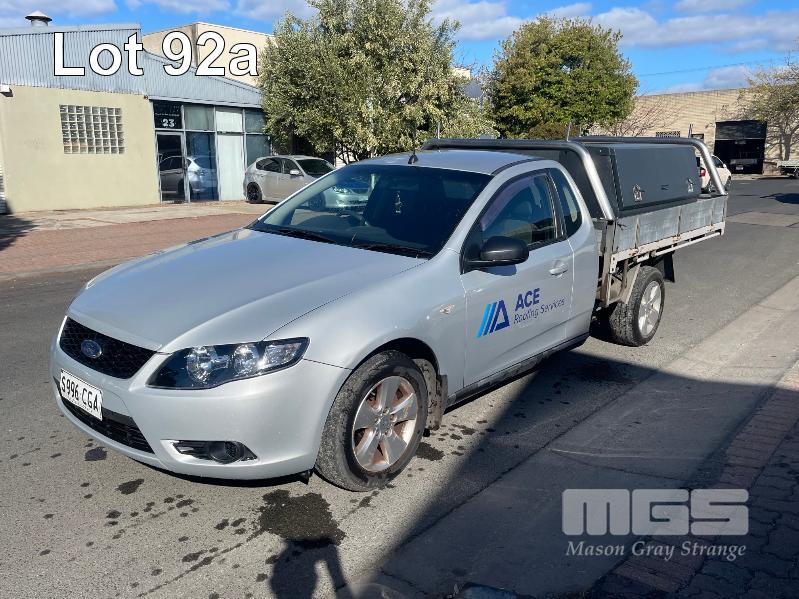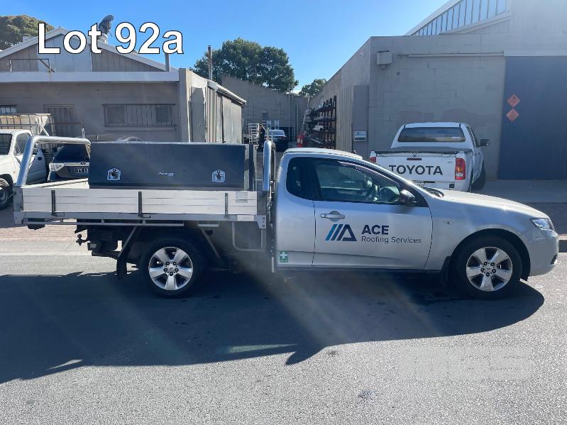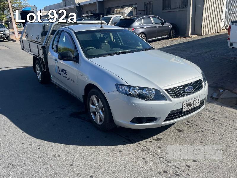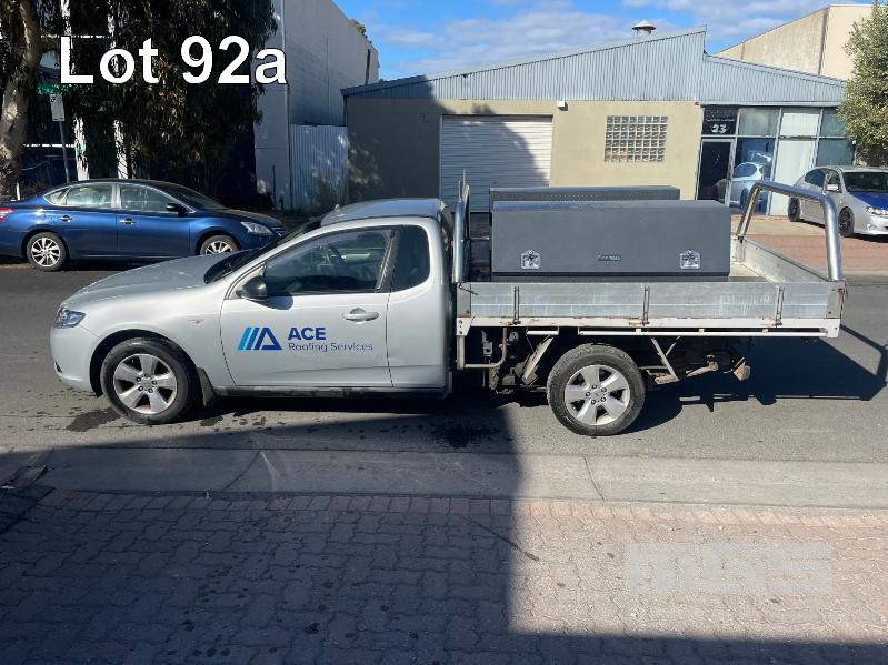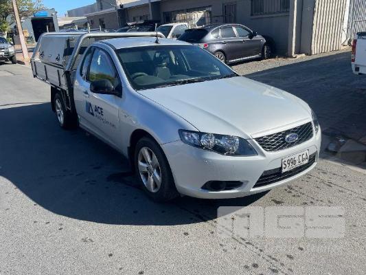 2008 FORD FALCON TRAY TOP REG: S996 CGA VIN: 6FPAAAJGCMBK74112 ODO: 306,290kms SHOWING 6 CYLINDER, AUTOMATIC TRANSMISSION, SIVLER DUCO, 3 SEAT, ALLOY WHEELS, TOW BAR, ALLOY DROP SIDE TRAY DUAL TOOL BOX ALLOY RACKS