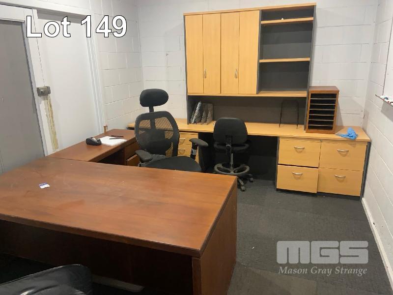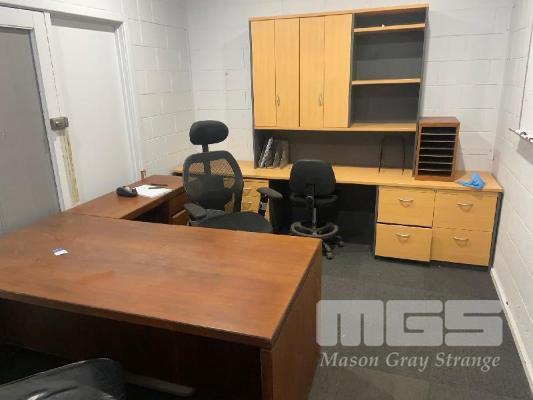 DESK & RETURN, SIDEBOARD WITH 4 DRAWERS, UNDER DESK FILING CABINET,