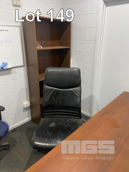 OVERHEAD CUPBOARDS & SHELVES, 3 x OFFICE CHAIRS & BOOKSHELF