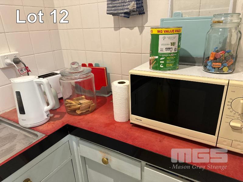 CONTENTS OF KITCHEN INCLUDING HISENSE FRIDGE/FREEZER, 205 LITRE, KETTLE, TOASTER ,MICROWAVE & ACCESSORIES