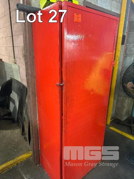 RED STEEL CUPBOARD, 1800 x 700 x 550mm (D) & CONTENTS