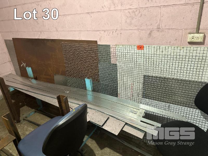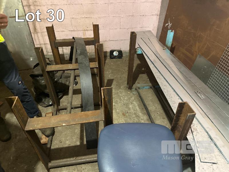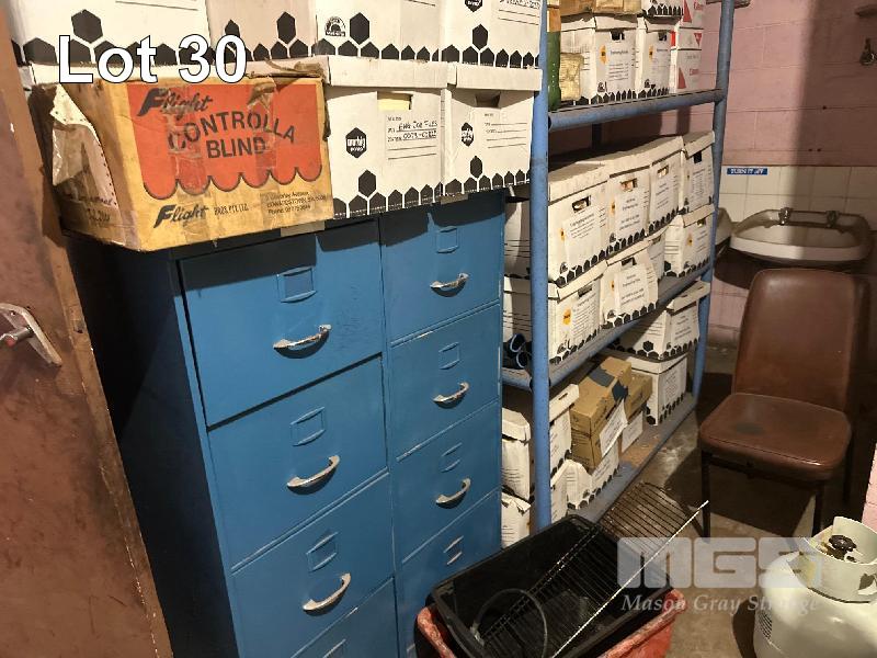 CONTENTS OF ROOM INCLUDING 2 x RACKS, STEEL FLAT GALV MESH & SHEETS , 2 x FILING CABINETS & OFFICE CHAIR