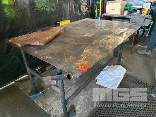 WELDERS BENCH, 1900 x 1300mm, 4mm PLATE TOP WITH 4" DAWN VICE, SMALL STEEL BENCH, 1200 x 900mm & BACKBOARD & BLUE PARTS STAND