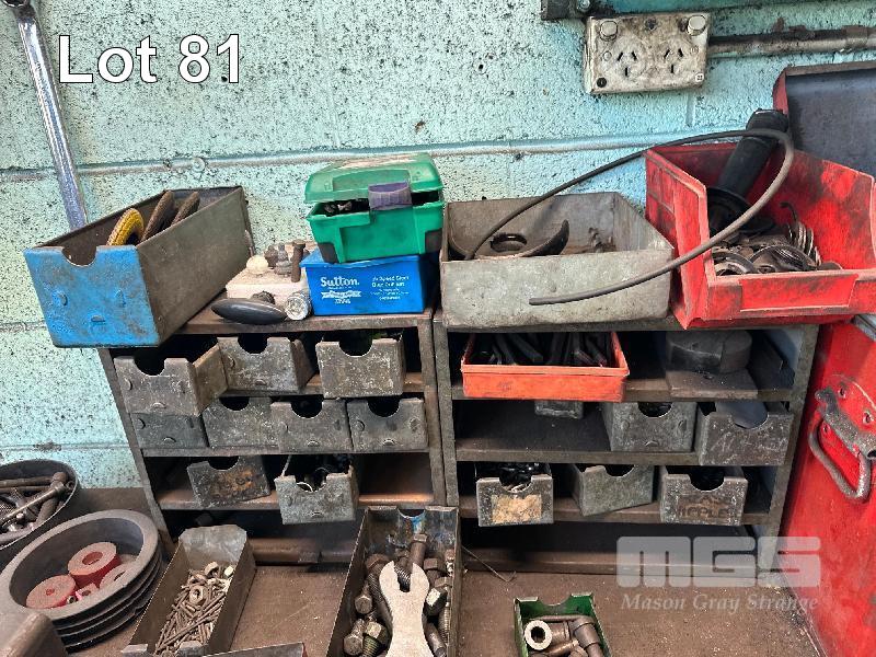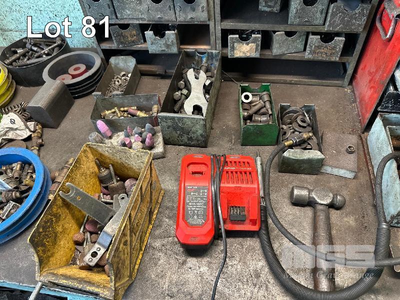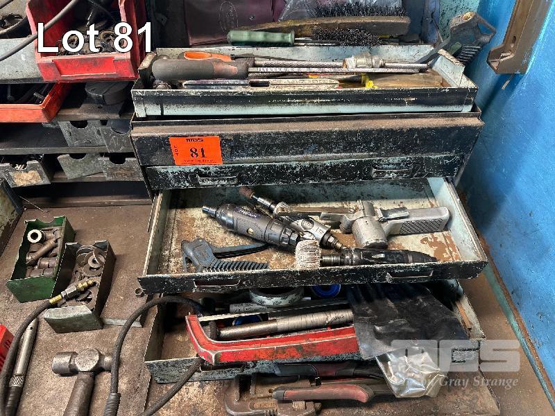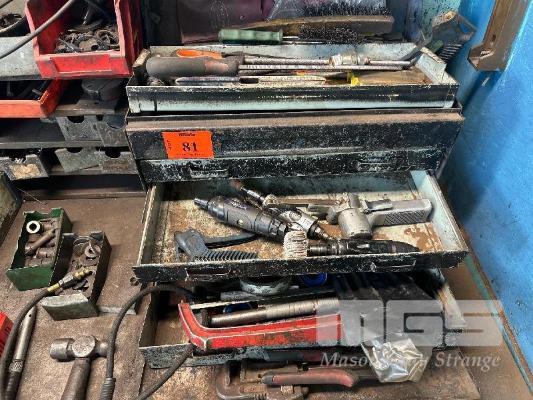 TOOL BOX, AIR TOOL, BABY BELT SANDER, DIE GRINDER & HAND TOOLS CONTENTS OF BENCH