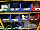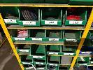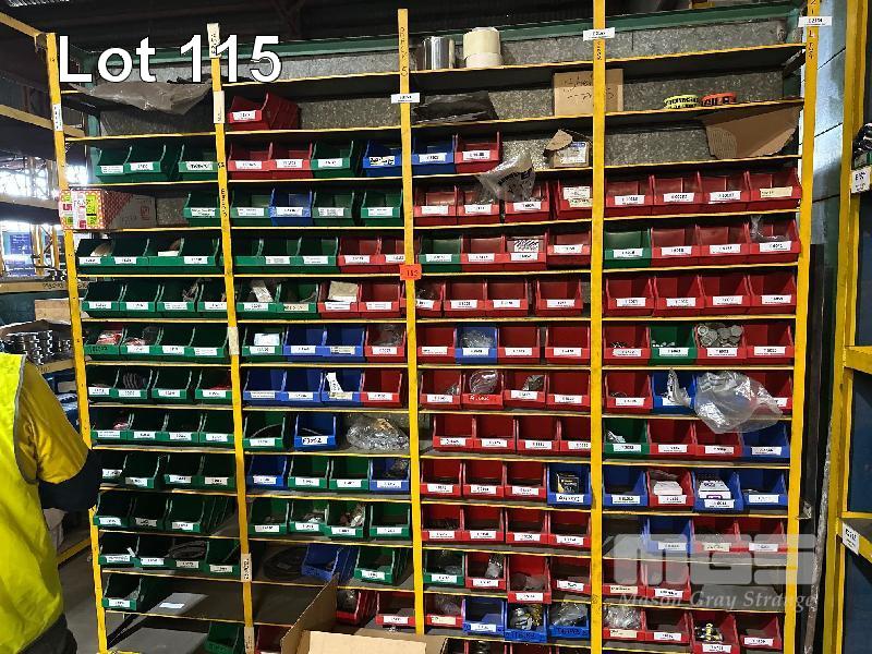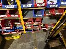 RACK & CONTENTS INCLUDING 150 (APPROX) x PARTS BINS, NUTS, BOLTS, CLAMPS, GRADED BOLTS, STAINLESS STEEL WIRE ROPE CLAMPS , GRINDING & CUTTING DISCS