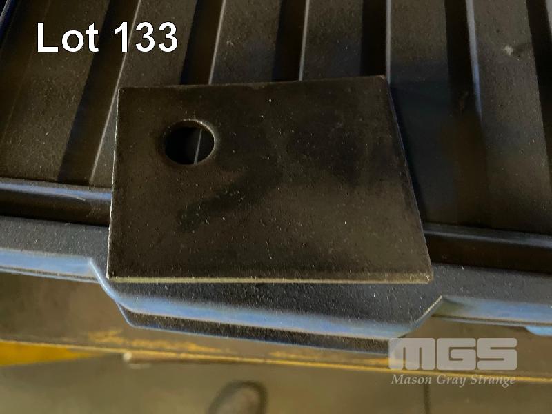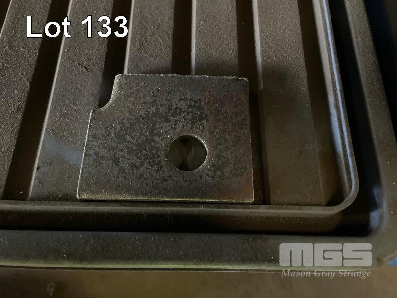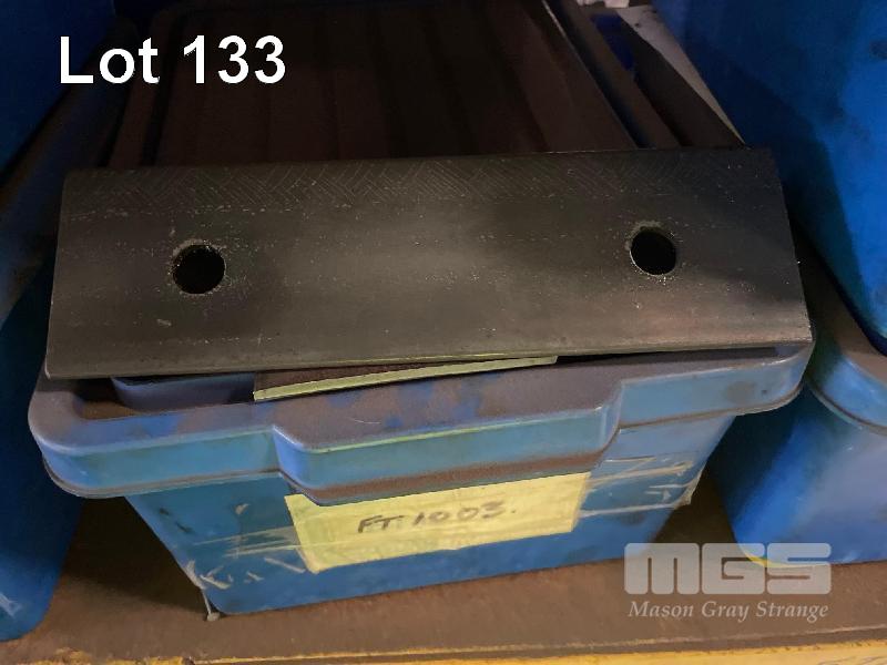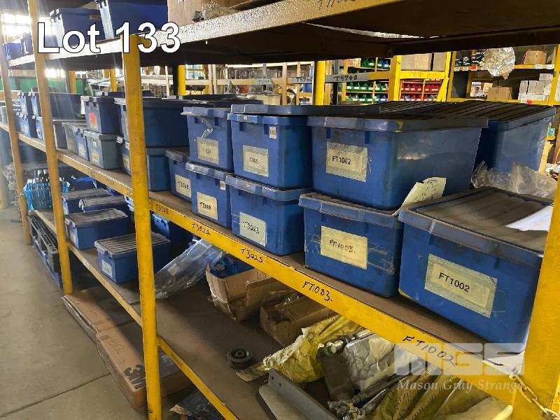 LARGE QUANTITY HEAVY STEEL COMPONENTS, FLANGES, BRACKETS, THREADED ROD, HARDWARE, CONTENTS OF RACK INCLUDES BINS, NOT TURNBUCKLES