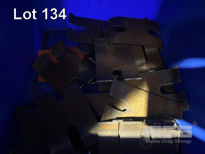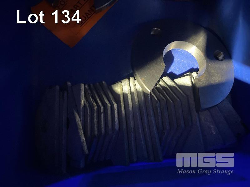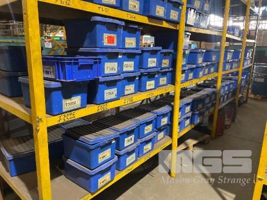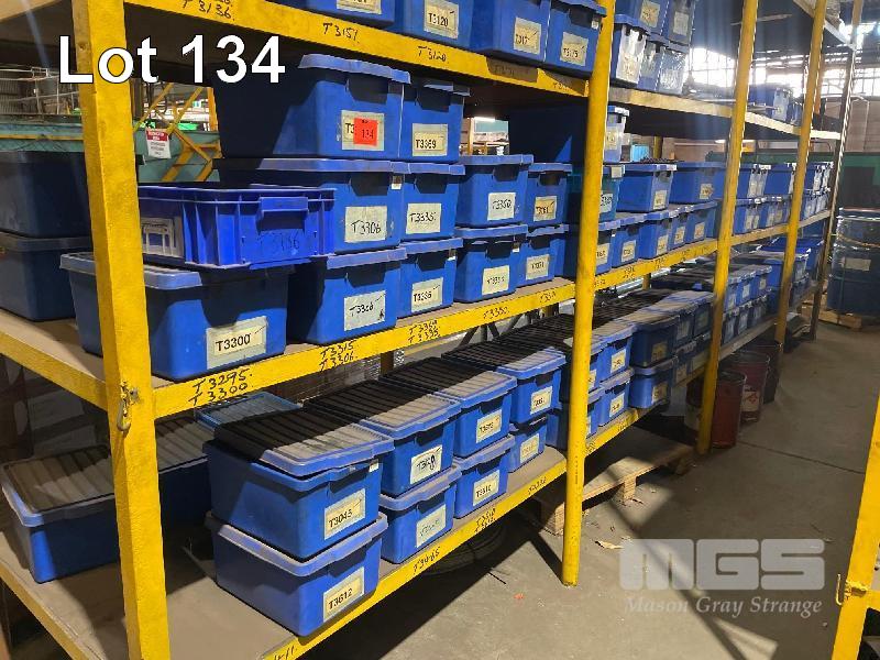LARGE QUANTITY HEAVY STEEL COMPONENTS, FLANGES, BRACKETS, THREADED ROD, HARDWARE, CONTENTS OF RACK INCLUDES BINS, NOT TURNBUCKLES