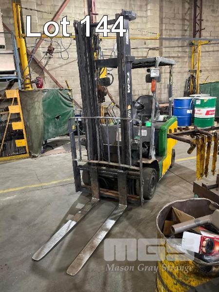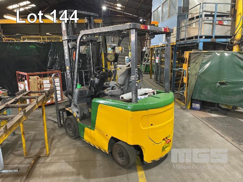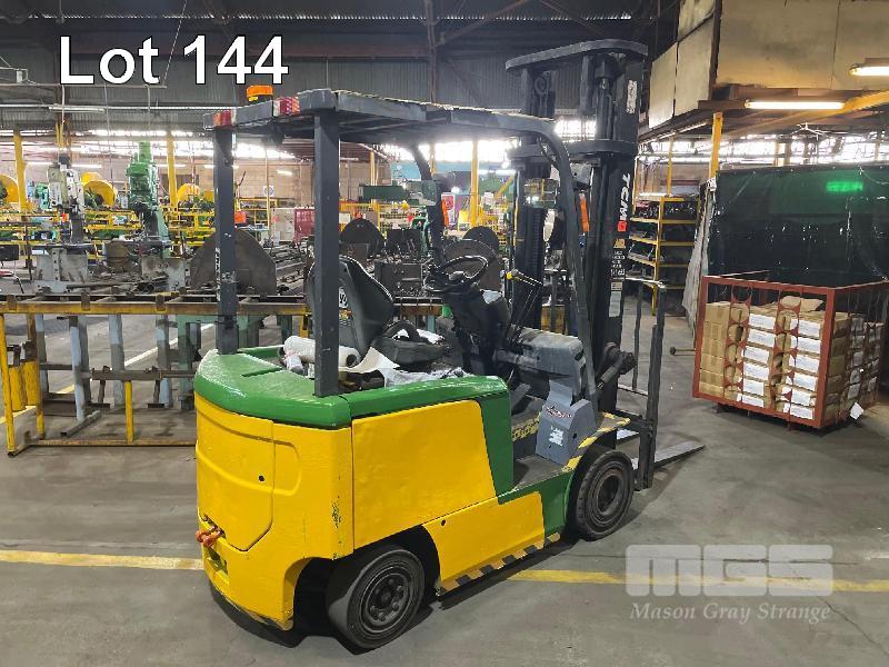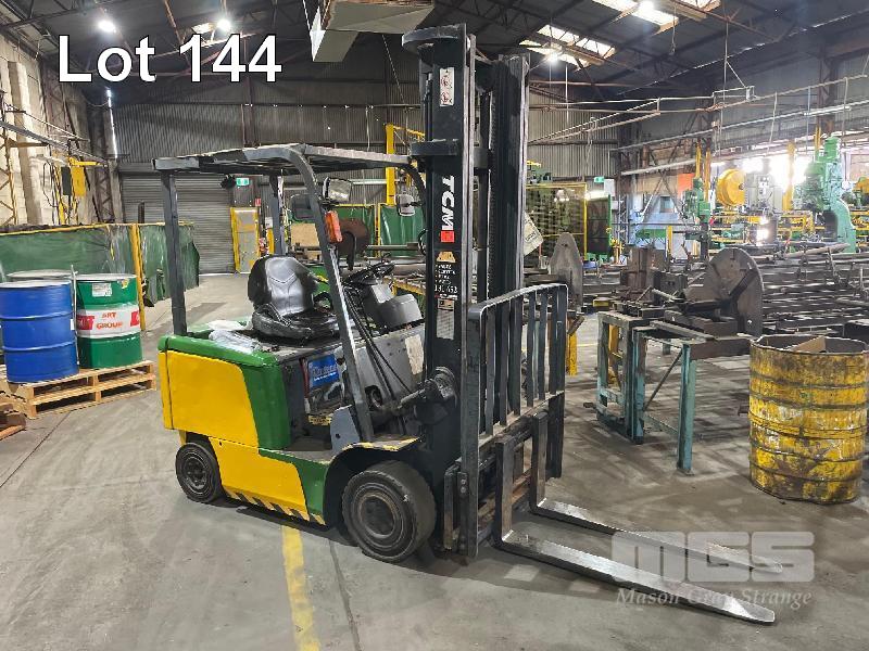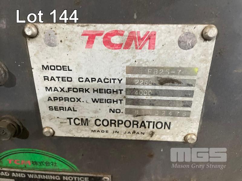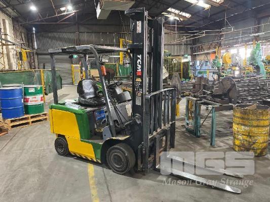 ELECTRIC FORKLIFT, TCM MOD: FB-25-7 CAPACITY: 2260kg 4m LIFT HOURS: 11,740 SOLID TYRES 2 STAGE MAST WITH CHARGER