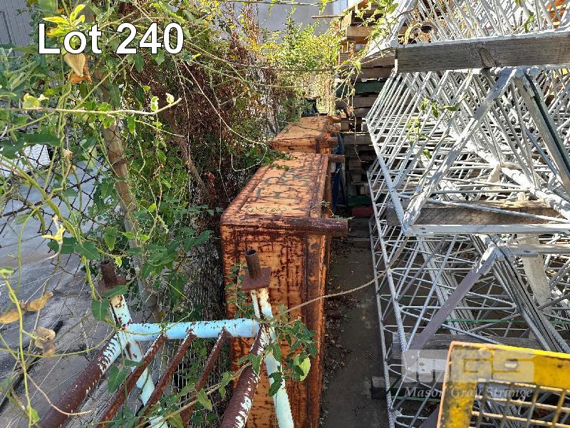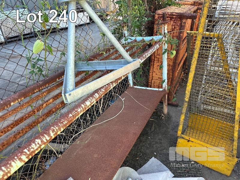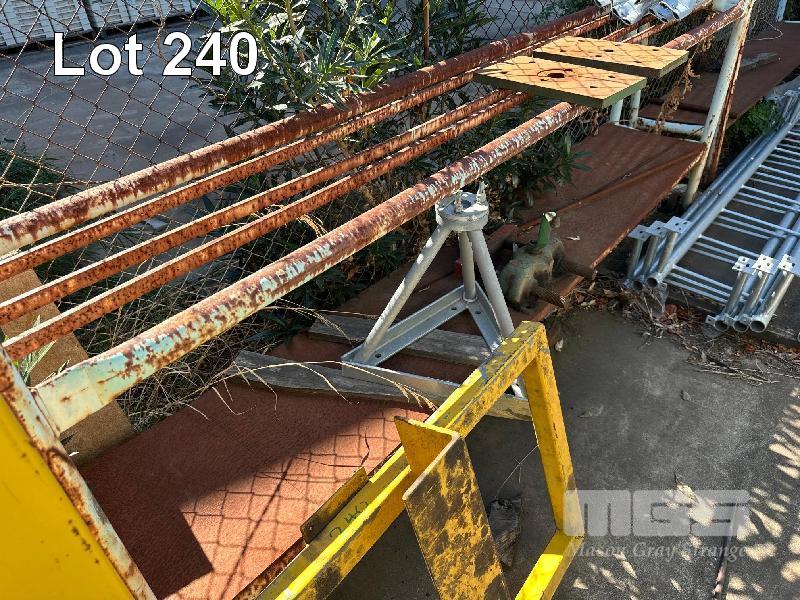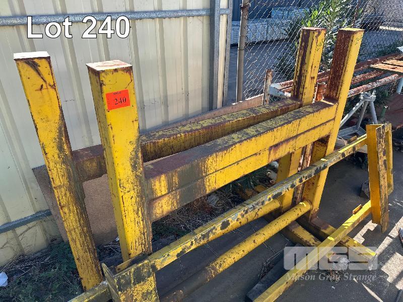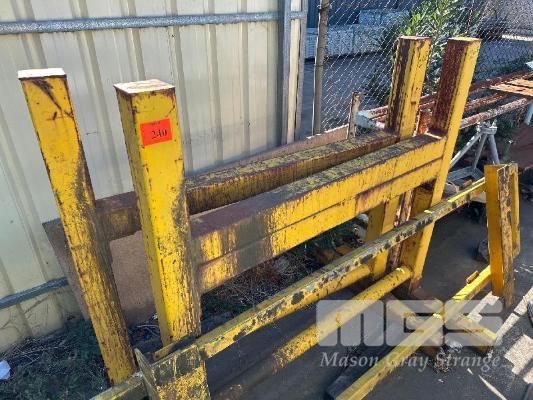 2 x BOX STEEL TRESTLES, 100 x 100mm, SUPPORT FRAME, 2 x STEEL TUBE RACKS, (BLUE) & 2 x ORANGE LOWLINE STILLAGES
