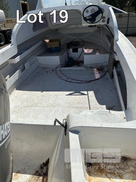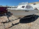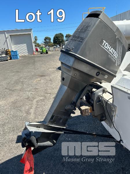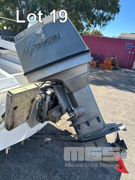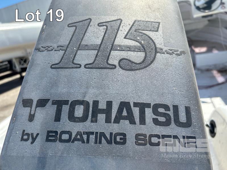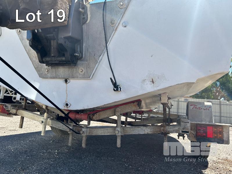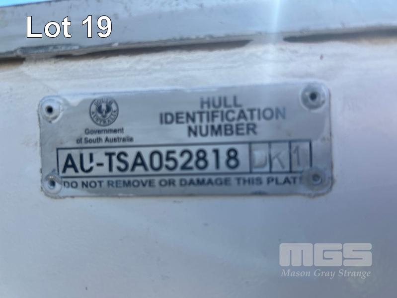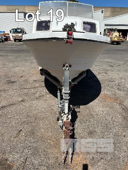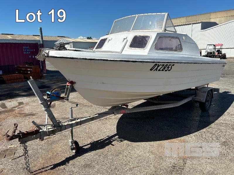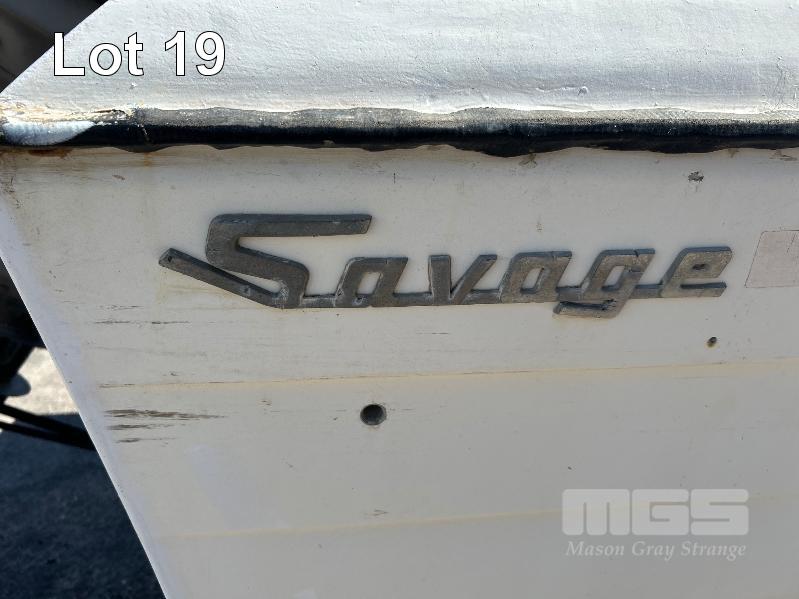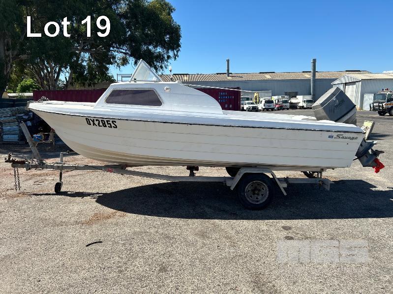 SAVAGE HALF CABIN BOAT 5.6m FIBREGLASS HULL MARINE REG. OX285S HIN: AU-TSAO52818DK1 WITH TOHATSU 115 OUTBOARD ENGINE ON 2011 SINGLE AXLE TRAILER MOD:635B, VIN:6TFTRA1L1TYC10593 BRAKES, BALL HITCH, WINCH, JOCKEY WHEEL GTM-1200KG NO REG PLATES