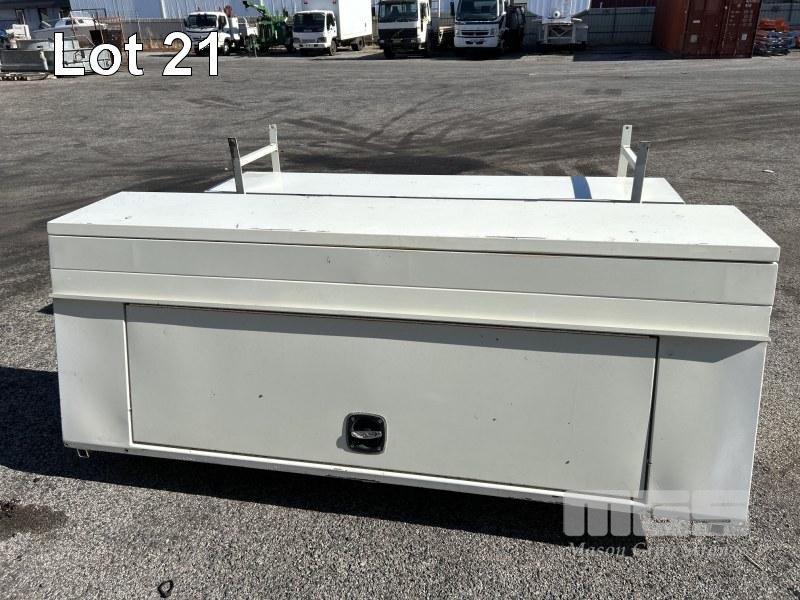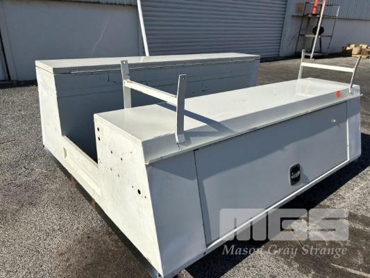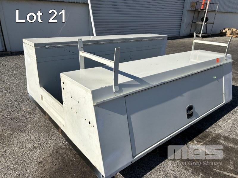TRADIES UTE BODY, GAS LIFT TOOL COMPARTMENTS EACH SIDE, LOCKABLE WITH CENTRE OPEN STORAGE AREA 600mm (W) TOTAL SIZE: 2245 (L) x 1840mm (W) MAIN TOOL BOX HEIGHT: 750mm (H)
