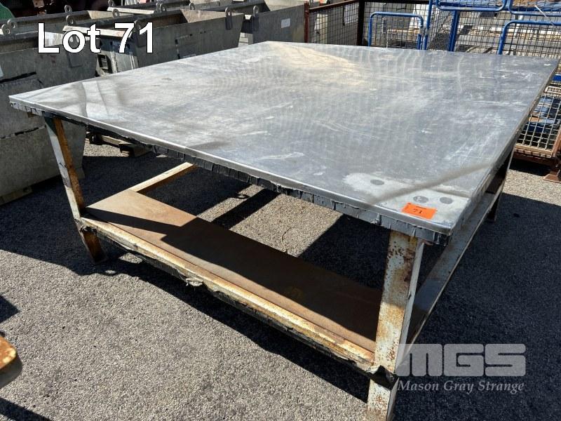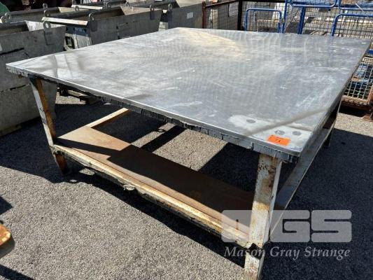 WORK TABLE, STEEL FRAME, STAINLESS STEEL CLAD TOP, 2000 x 2000 x 950mm (H)