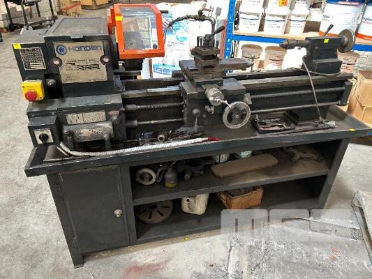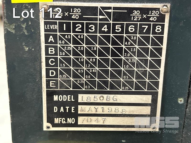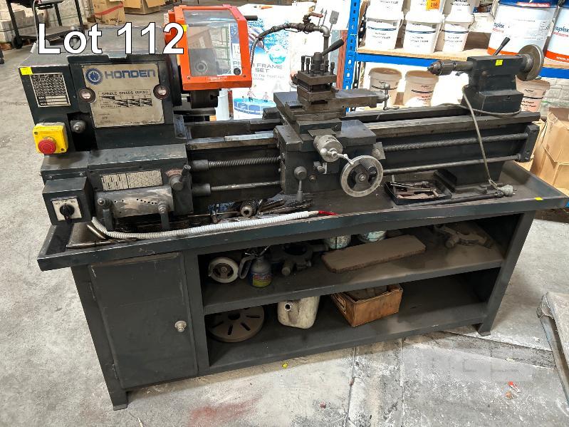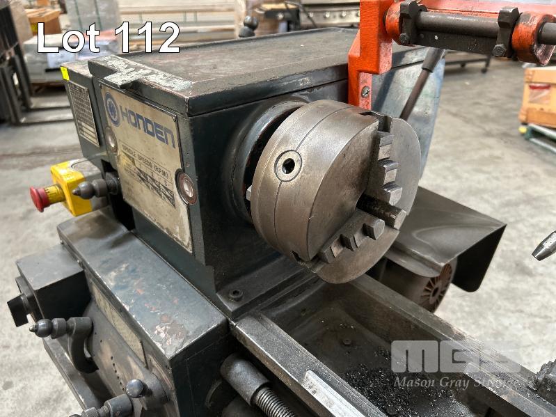 LATHE, HODEN MOD: L850BG DOM: 1988 MFG NO: 7047 BED LENGTH: 1200mm SWING: 300mm THROUGH FEED: 35mm DIAMETER CHUCK SAFETY GUARD WITH 2 x 3 JAW & 1 x 4 JAW CHUCKS FACE PLATE, 2 x STEADYS, TOOL HOLDER, ENGINEERS VICE, DRILL BITS & MANUAL 240V