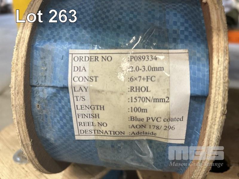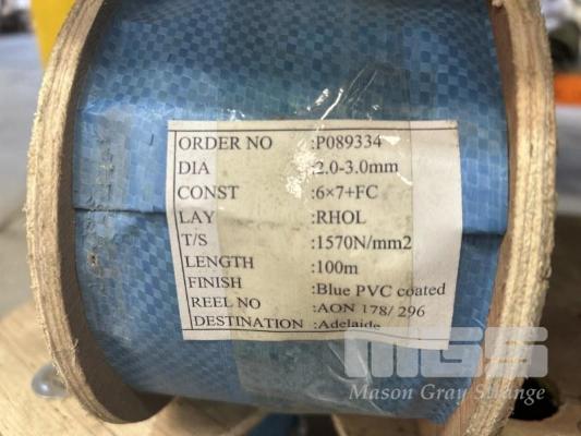 WIRE ROPE, NOBLES & SONS BLUE PVC COATED, 2-3mm DIAMETER 7 x DRUMS @ 100m