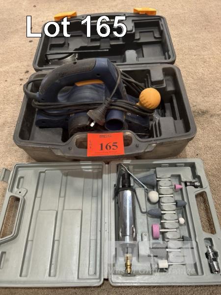 PLANER, GMC, 240V WITH CARRY CASE AND DIE GRINDER WITH ASSORTED ATTACHMENTS IN CARRY CASE
