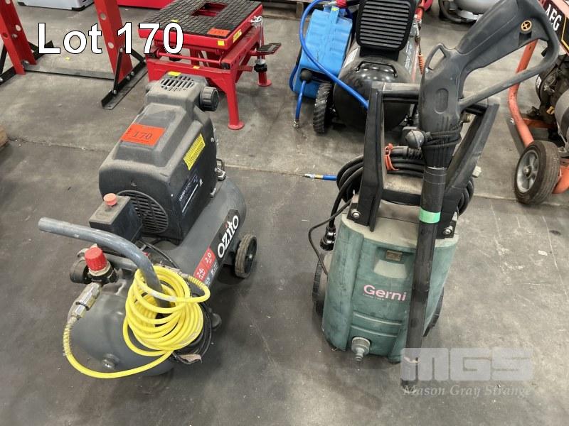AIR COMPRESSOR, OZITO 165 L/MIN MOD: ACP-2420 AND PRESSURE WASHER, GERNI MOD: CLASSIC 1104 240V
