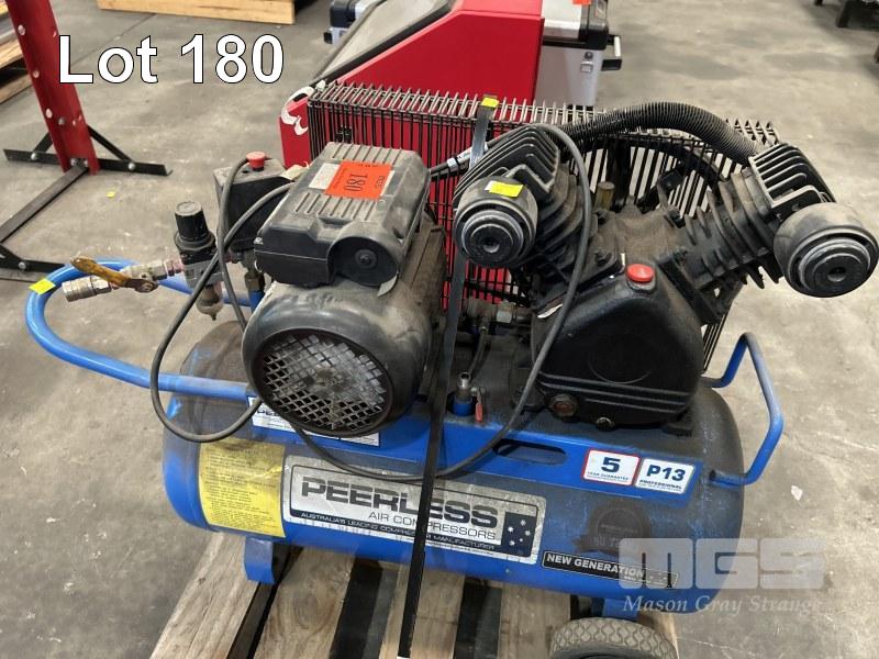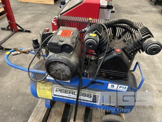 AIR COMPRESSOR, PEERLESS MOD: P13 TWIN CYLINDER 235L/MIN CAPACITY MOBILE, 240V