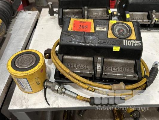 AIR OP HYDRAULIC POWER PACK, ENERPAC MOD: XA12G 10,000 PSI WITH HOSE & 50 TONNE HYDRAULIC CYLINDER