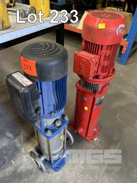 2 x CENTRIFUGAL FLUID PUMPS, CALPEDA, TYPE: MXV25-210 1.5kw, FLOW: 4.5m3/HOUR, HEAD: 42m & LOWARA, MOD: 5SV09F01SM FLOW: 8.5m3/HOUR, HEAD: 65m 415V
